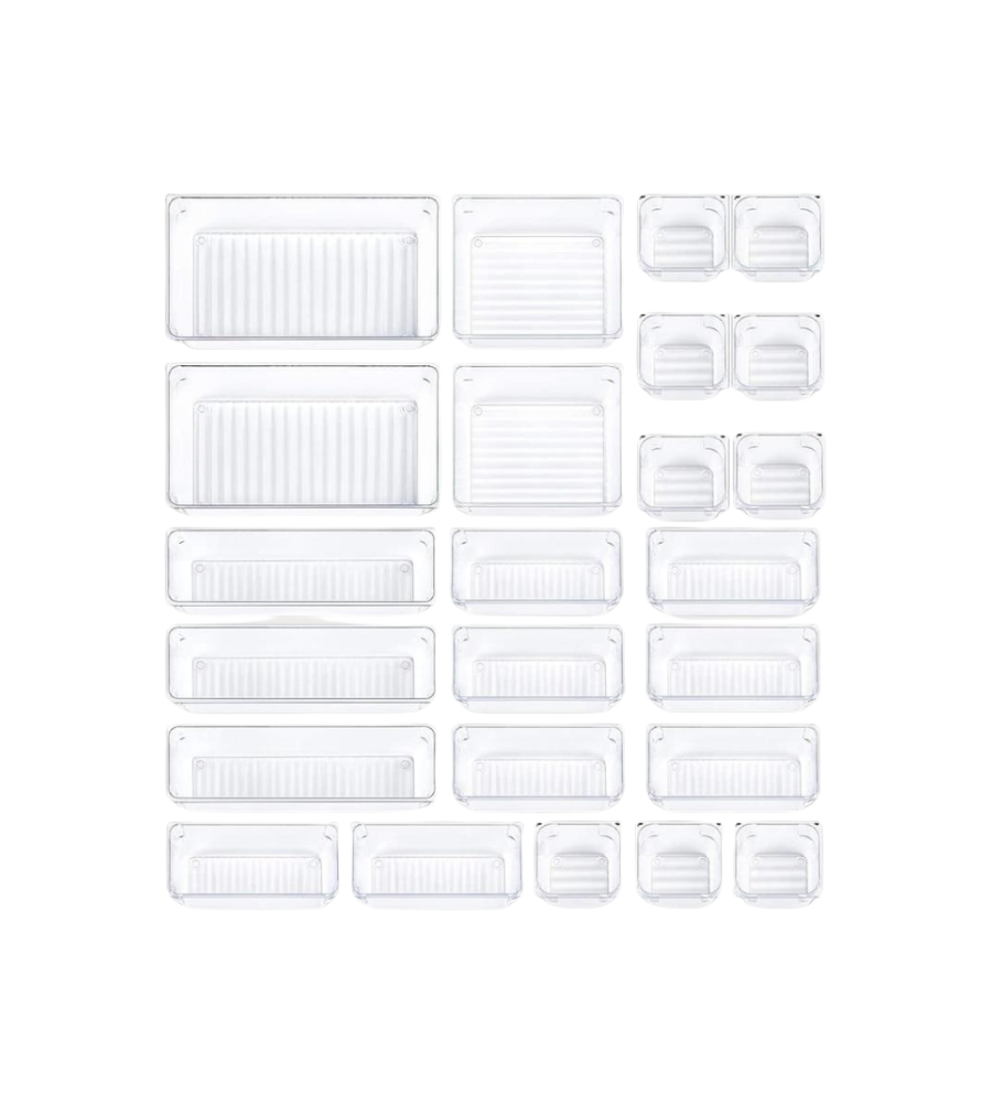 Che sia per l'ufficio, il guardaroba, la cucina, il bagno o per il trucco, grazie alle diverse dimensioni e versioni disponibili, potete progettare i vostri cassetti con il nostro set di inserti per cassetti da 24 pezzi in base alle vostre esigenze e alle dimensioni del cassetto.