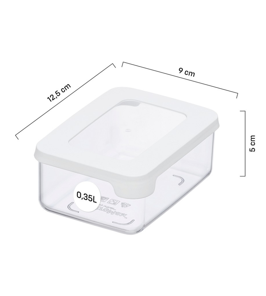 12.5x9x5cm (350ml) / 12.5x9x10cm (800ml) / 12.5x9x20cm (1600ml) / 12.5x9x28cm (2250ml) / 18x12.5x20cm (3500ml) (LxBxH)
